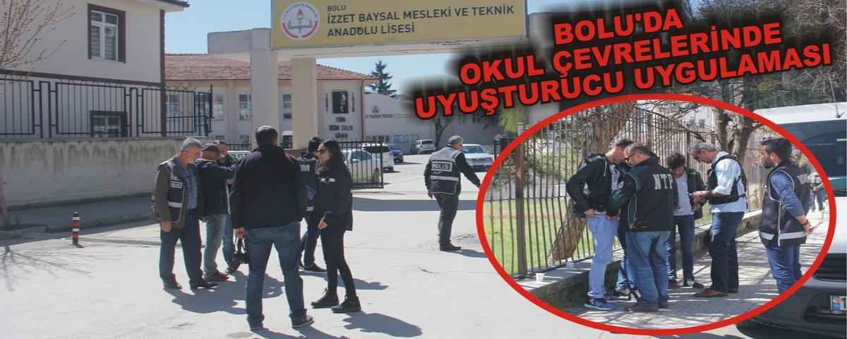 Bolu İl Emniyet Müdürlüğü KOM, Uyuşturucuyla Mücadele, Asayiş ve Çocuk Şube ekipleri şehir merkezinde bulunan okulların önleri ve çevrelerinde uyuşturucu madde satıcılarına yönelik uygulama yaptı. Geniş katılımla yapılan uygulamada okul çevresinde şüpheli görülen kişiler üzerinde kimlik ve üst araması yapıldı. Öğrencilerin meraklı gözlerle izlediği uygulamada yapılan üst aramalarında herhangi bir uyuşturucu maddeye rastlanılmazken, şehir merkezinde farklı noktalarda uyuşturucu madde satıcılarına yönelik uygulamaların devam edeceği belirtildi.