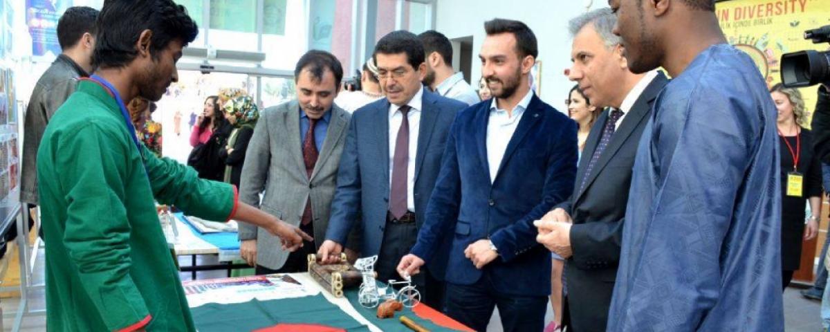 Konuşmaların ardından protokol üyeleri stantları tek tek gezerek uluslararası öğrencilerle sohbet ettiler.