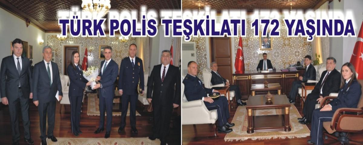 Bolu Valisi Aydın Baruş, Türk Polis Teşkilatının kuruluşunun 172'inci kuruluş yıldönümü ve Polis Haftası etkinlikleri kapsamında İl Emniyet Müdürü İbrahim Özel ile birlikte Emniyet Müdür Yardımcısı Tuncay Sancak, Trafik Şube Müdürü Recep Peker Eryılmaz, Muhabere Müdürü Uğur Aykut ve Polis Memuru Çiğdem Çağan’ı makamında kabul etti.