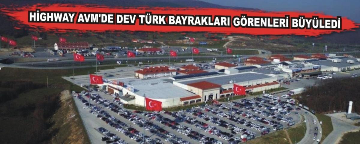 Highway Outlet Alışveriş Merkezi’nin hem TEM Otoyolu hem de D-100 karayolu girişindeki otoparkları dev Türk bayraklarıyla donatıldı. 14 adet dev Türk bayrağı özellikle gece muhteşem görüntüsüyle alışveriş merkezine gelenleri ve TEM otoyolundan geçen sürücüleri büyülüyor.
