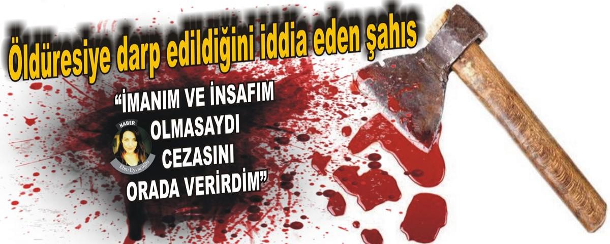 Safettin İ. ise husumetlerinin daha öncesine dayandığını ifade ederek, “Sana burada koyun besleme işi yaptırmayacağım diyordu. Ben de ruhsat aldım. O gün de traktörle giderken karşıma çıktı. İnip balta ile üstüme saldırdı. Ben de çoban sopası ile kendimi korumaya çalıştım. Allah şahidim imanım ve insafım olmasaydı ben cezasını orada verirdim. Ama adalet versin. Taşla başıma vurdu. Bir an kendimi kaybettim. Telefonla Afer isimli arkadaşımı arayıp ‘Ben ölüyorum yetiş’ diyebildim. Sonra görme yeteneğimi kaybettim. Baygınlık geçirdim. Bir kaç gün sonra gözümü hastanede açtım” dedi.