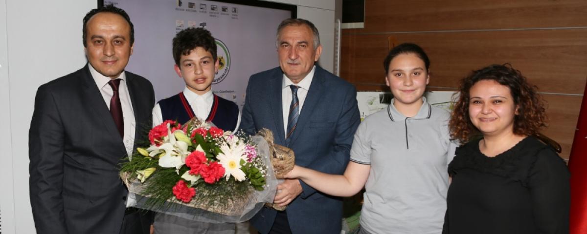 Bolu Belediye Başkanı Alaaddin Yılmaz, 23 Nisan Ulusal Egemenlik ve Çocuk Bayramı nedeniyle başkanlık makamında Atatürk Orta Okulu öğrencileri Hilal Gökçen Eren ile Eren Emir Acar’i kabul etti. Perşembe günü saat 16.00’da gerçekleşen kabulde öğrencilere okul müdürleri Metin Kazan ile Türkçe öğretmenleri Esra İltir de eşlik etti.