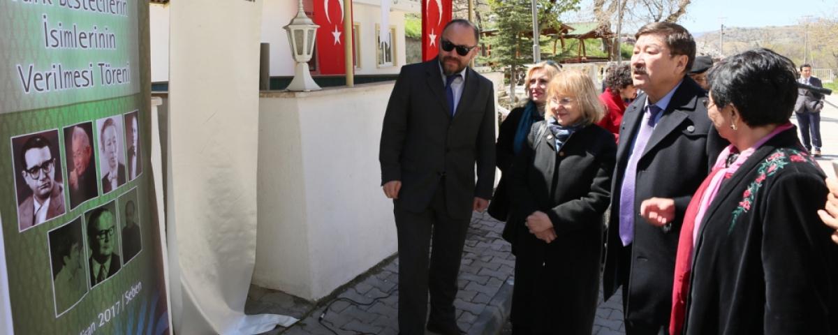 Seben Belediye Başkanı Süleyman Özbağ, törende yaptığı konuşmada ilçenin tarihiyle ilgili bilgiler verdi. Seben’in Türk tarihi açısından önemli bir yere sahip olduğunu kaydeden Özbağ, turizme kazandırılan Solaklar Kaya Evleri’nin de geçmişte M.Ö. 1200’lü yıllarda Frigyalılara ev sahipliği yaptığını vurguladı. Özbağ, bungalov evlere sanatçı isimlerinin veriliş amacına yönelik şunları söyledi: “Bolu Belediye Başkanımız Sayın Alaaddin Yılmaz’ın önderliğinde yaptığımız buradaki evlerimize Türk bestecilerimiz isimlerini vererek, turizm potansiyeli yüksek olan Seben’imizi sanatsal olarak da Düsen beyin önderliğinde belirli bir seviyeye çıkartmayı hedefliyoruz. Geçtiğimiz dönemlerde kültürlerarası sanat festivalleri düzenliyorduk, ressamlarımız gelip burada resimlerimizi yapıyordu, bundan sonraki süreçte bestekârlarımızı da ilçemizde ağırlayarak inşallah güzel eserlerin çıkmasına vesile olacağız.”