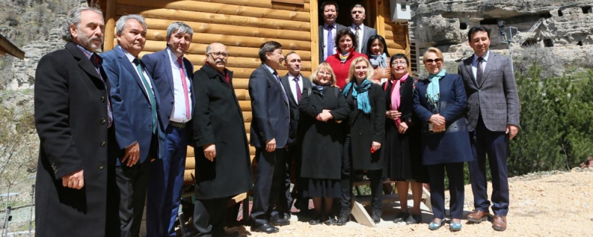 Kaseinov, kültürel ve sanatsal faaliyetlerin arttırılması için umutlu olduğunu vurguladığı konuşmasının devamında ise “Türk Dünyasına yapmış olduğu üstün hizmetler anısına TÜRKSOY onur madalyası takdim ettiğimiz “Hocaların Hocası” Profesör Doktur Halil İnalcık’ın adını taşıyan bu mekanın hayat bulması sayesinde Köroğlu’nun topraklarındaki ortak kültür ve sanatsal etkileşimimiz yeni bir ivme kazanacaktır” ifadelerini kullandı. Yapılan konuşmaların ardından protokol üyeleri tarafından kurdele kesimi yapılarak, törene katılanlarla birlikte bungalov evler dolaşıldı.