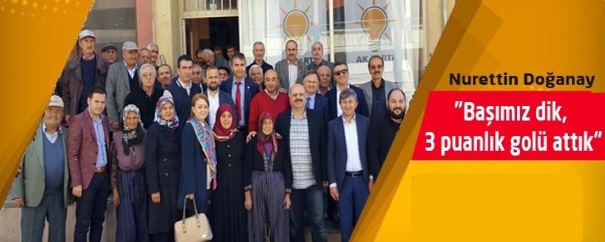 Geçtiğimiz günlerde Fransa'da bir siyaset bilimcinin yaptığı seviyesiz açıklamayı hatırlatan AK Parti İl Başkanı Nurettin Doğanay da yaptığı konuşmada; "Geçenlerde Fransa'da sözde siyaset bilimcisi; meşru yollardan Recep Tayyip Erdoğan'ı indiremiyoruz, suikast düzenlenmeli, öldürülmeli dedi. Acaba hayır diyenlerin vicdanı ve kalbi o sözleri duyduktan sonra sızladı mı? Ama biz evet diyenlerden Allah razı olsun diyoruz. Aslında hayır diyenler de kazandı. Biz belki %52'lik sonuca çok fazla sevinemedik, bütün teşkilatlarda bir burukluk oldu. Hayır sevineceğiz. Başımızı dik tutacağız, dik tutmak zorundayız. Maçta 10 gol atsan da 3 puan veriyorlar, bir gol atsan da 3 puan veriyorlar. Biz o golü attık. Onun için sevineceğiz, sevinmek zorundayız. O golü atmak kolay değildi. Dünyanın üzerimize geldiği bir anda bunu başarmak çok olmadı. Ama Elhamdülillah biz bunu başardık. Bu süreçte emek veren tüm İlçe Başkanlarımıza, AK Partili Belediye Başkanlarımıza, SKM Başkanlarımıza, İl Genel Meclisi Başkan ve Üyelerimize, Belediye Meclis Üyelerimize, Yönetimlerde olan ya da olmayan, Recep Tayyip Erdoğan davasına emek veren başta önden giden Hanım kardeşlerimize, gençlerimize kısacası herkese teşekkür ediyorum" ifadelerini kullandı.