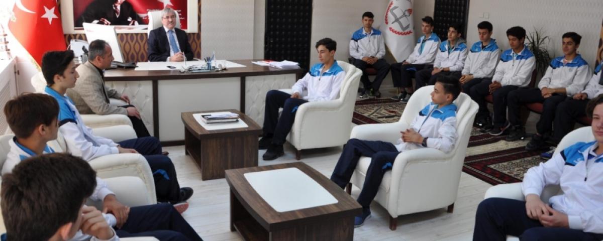 Ziyaret sonunda Milli Eğitim Müdürü Cengiz sporculara çeşitli hediyeler verdi.