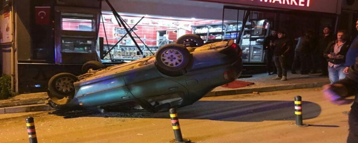 Süreyya Sokak'ta direksiyon hakimiyetini kaybeden şöfürün kullandığı otomobil, Gezgin İş Hanı girişinde bulunan kasan dükkanına daldı. Sürücü olaydan yara almadan kurtulurken, araçta maddi hasar oluştu. Haber: Hakan Aydın Süreyya Sokak üzerinden Karacasu istikametine seyir halinde iken sürücüsünün direksiyon hakimiyetini kaybettiği 14 GC 595 plakalı otomobil, Gezgin İş Hanında bulunan kasap dükkanına daldı. Yol kenarındaki bariyerleri kırarak dükkana çarptıktan sorna ters dönen otomobilin sürücü, kaza yerine gelen vatandaşlar tarafından araçtan çıkarıldı. Kaza sonrası otomobil ve dükkanda maddi hasar oluşurken, otomobilin sürücüsü 112 ekipleri tarafından İzzet Baysal Bolu Devlet Hastanesi Köroğlu Ünitesi'ne kaldırıldı.
