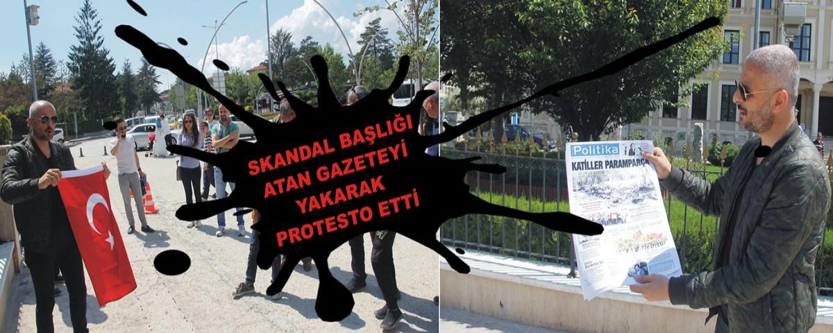 Şırnak’ın Uludere ilçesinde helikopter kazası sonucu şehit olan 13 asker için cuma günkü sayısında skandal manşet atan Yeni Özgür Politika isimli gazete Bolu’da yakılarak protesto edildi. Gazetenin manşet sayfası çoğaltarak Bolu Valiliği önüne gelen Mahmut Alan, valilik önünde bulunan demirlere sayfaları asarak devletin gereğini yapmasını istedi. "Benim komutanlarıma kimse hakaret edemez" ifadelerini kullanan Alan, gazetenin manşetinin bulunduğu kağıtlardan bir tanesini de yakarak, “PKK’lıları, YPG’lileri aynı böyle yaktığım gibi yakacağız. 13 tane şehide katil diyen zihniyeti rögar borularına gömeceğiz. Mezara da gömmeyeceğiz. Bu vatan hainlerine toprak çok" diyerek tepki gösterdi.