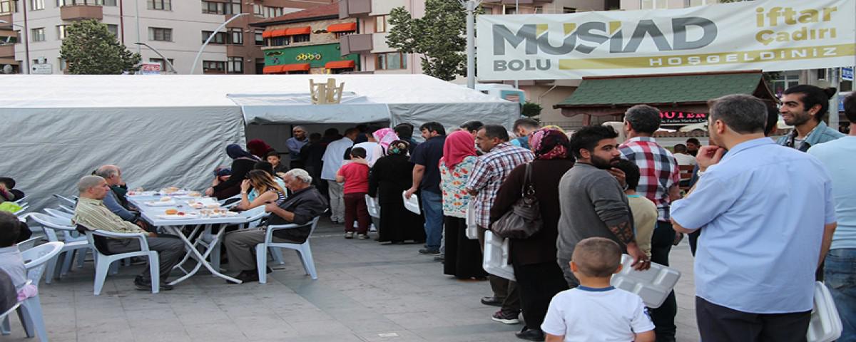 Müstakil Sanayici ve İşadamları Derneğinin geleneksel hale getirdiği ve bu sene 3.sünü düzenlediği iftar çadırının konuğu Bolu Valisi Aydın Baruş oldu. İftar öncesinde açıklamalarda bulunan Vali Baruş, “Hayırsever kuruluşlarımız ve hayırsever insanlarımız zor durumda olan vatandaşlarımıza, engellilerimize son derece cömert bir şekilde yardımlarını yaptılar.” dedi ve ekledi;