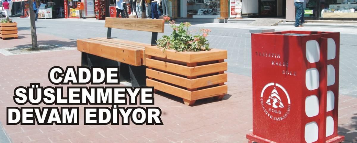 İzzet Baysal Caddesinde bir yandan baskı asfalt çalışması ve baskı asfalt boyama işlemleri devam ederken bir yandan da süsleme işlemleri yapılmaya devam ediyor. Süsleme çalışmalarında Bolu Belediye ekipleri tarafından İzzet Baysal Caddesi üzerinde bulunan ve vatandaşların dinlenmesi için konulan kent mobilyaların yanına saksı ve caddeye yeni çöp kutuları konuldu.