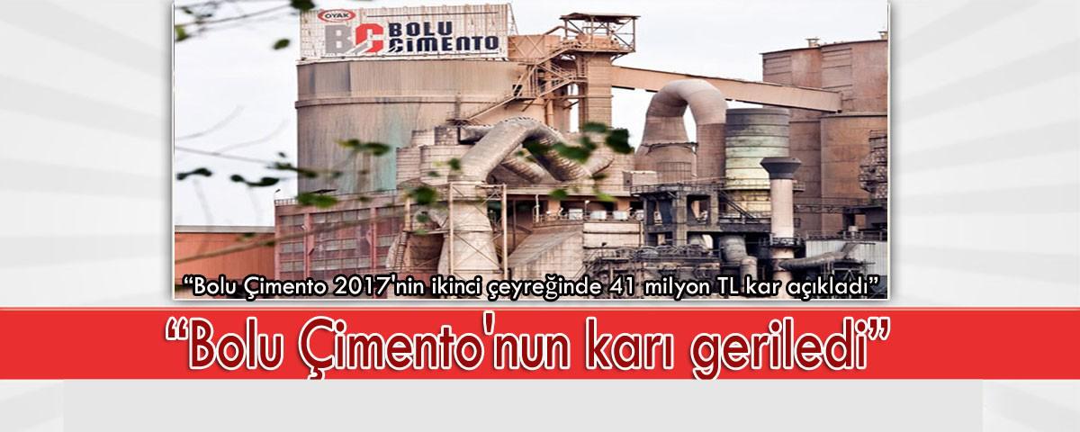 Bolu Çimento, bu yılın ikinci çeyreğine ait bilanço rakamlarını açıkladı. Bolu Çimento tarafından yapılan açıklamaya göre, şirketin ikinci çeyrekteki net karı 2016 ikinci çeyrek karına oranla yüzde 20 azalışla 41.009.845 TL olarak gerçekleşti. Şirket, geçtiğimiz yılın aynı döneminde 51.443.123 TL net kar açıklamıştı.