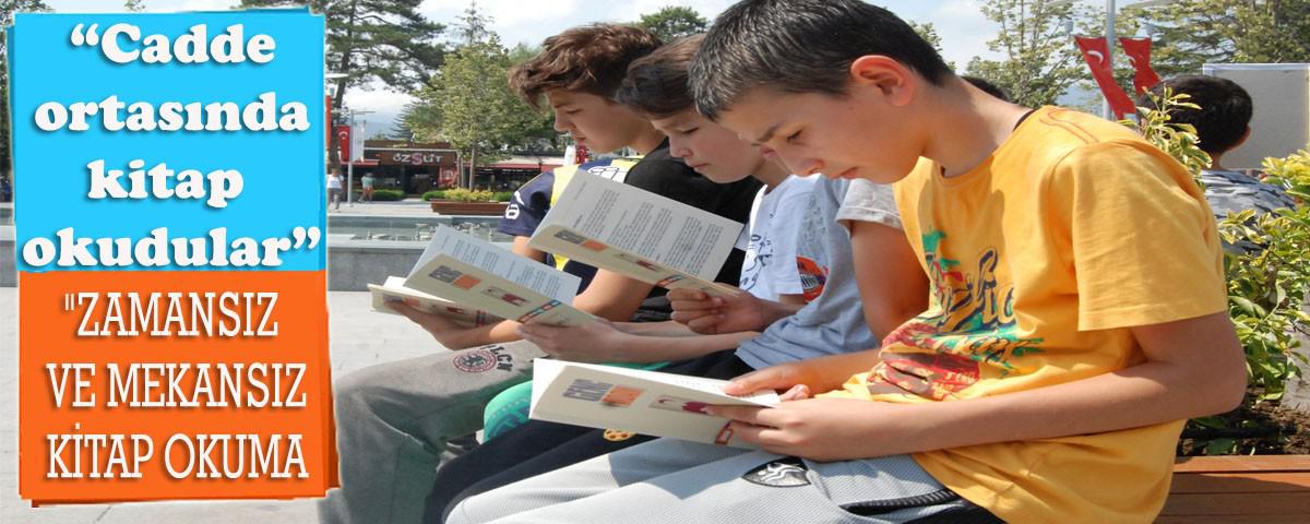 Bolu Anadolu Gençlik Derneği, kent meydanında “Zamansız ve Mekansız Okumalar” adlı okuma etkinliği düzenledi. Düzenlenen etkinliğe yaşları 9-14 ile değişen 40 öğrenci katıldı. Türkiye’deki kitap okuma yetersizliğine dikkat çekmek için böyle bir etkinlik düzenlediklerini söyleyen Anadolu Gençlik Derneği Bolu Ortaokullar Şube Başkanı Hakan Yıldırım, “Biz Zamansız ve Mekansız Okumalar adı altında, kardelen meydanında ortaokullu kardeşlerimiz ile birlikte bir etkinlik düzenlemek istedik. Buradaki temel amacımız kardeşlerimize kitap okuma alışkanlığı kazandırabilmek ve kitap ile birlikte ahlak da kazandırabilmek, temel amacımız sadece Kuran ve ilmihal dersi vermek değil bunun yanı sıra ahlaklı bir birey yetiştirebilmek, bunun için de kitabın ahlaka büyük bir katkısının olduğunu düşündüğümüz için böyle bir etkinlik düzenledik. Bir takım kişisel nedenler dolayısıyla etkinliğimizi 40 küsur öğrenci ile gerçekleştiriyoruz fakat asıl hedeflediğimiz sayı 70 öğrenciydi. Valiliğimiz de desteklediği ve izin verdiği için kendilerine teşekkür ederiz.” şeklinde konuştu. Sefa Günay