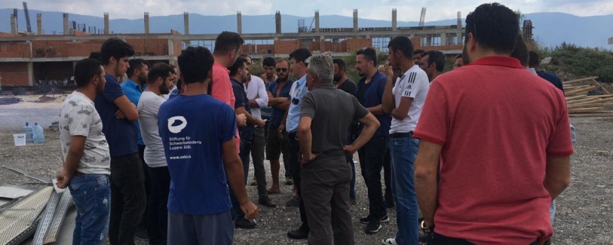 50 inşaat işçisisnin eyleme geçmesi üzerine olay yerine Emniyet güçleri sevk edildi. Olay yerine gelerek işçiler ile konuşan Emniyhet güçleri uzun uğraşlar sonrası işçileri yatıştırarak ateşi söndürdü.