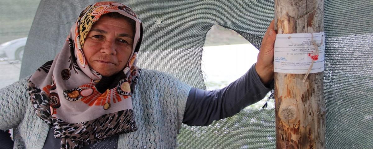 Evleri ve 6 direk üzerindeki fileden oluşan çardağın da mühürlendiğini belirten köylüler, yetkililerin uyarısı üzerine mühürlere zarar gelmemesi için üzerilerine poşet geçiriyorlar. Mühre zarar gelmesi halinde cezası olduğunun söylendiğini ifade eden köylüler, “Biz buradayken mühürlere zarar gelmesin diye önlem alıyoruz. Ama biz buradan gittikten sonra mühürlere ne olur onu da bilmiyoruz” dediler.