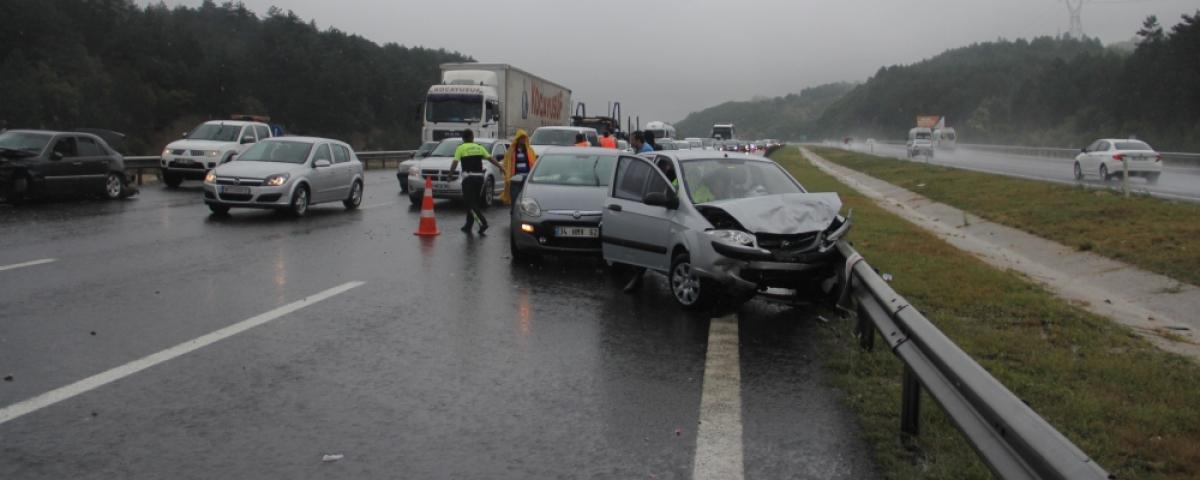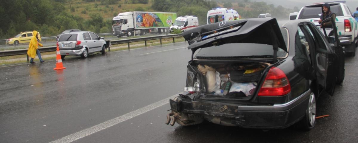 Kaza nedeniyle TEM otoyolu İstanbul istikametinde uzun araç kuyrukları oluştu.