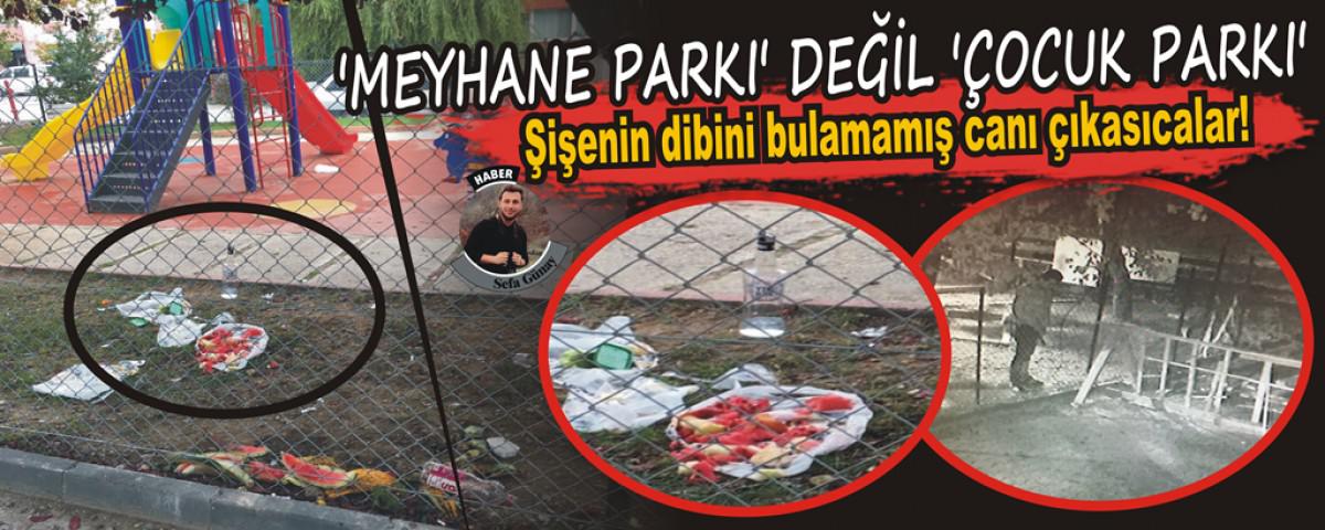 Belediyenin yaptığı birçok parktan biri olan Aktaş Mahallesi’ndeki Çocuk Parkında rezillik diz boyu. Ayyaşlar almış nevaleyi-rakıyı oturmuşlar parkın çimenlerine yiyip-içip eğlenmişler. Pislettikleri ortalığı da temizlemeden çekip gitmişler. Bir de bitiremedikleri rakı şişesini çimlere dikerek imzalarını bırakmışlar.