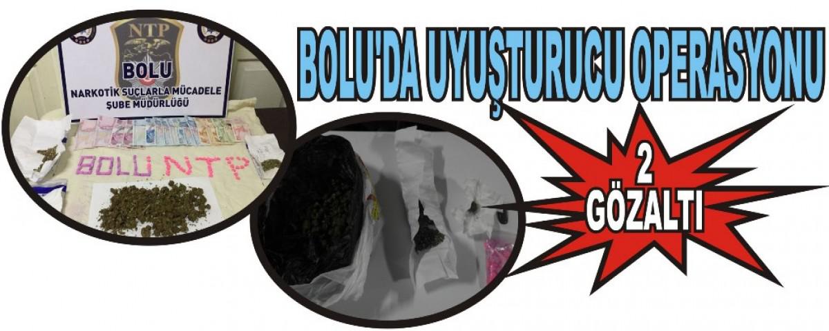 Edinilen bilgiye göre, İl Emniyet Müdürlüğü Narkotik Suçlarla Mücadele Şube Müdürlüğü ekipleri, Bolu merkezli 2 ilde uyuşturucu madde ticareti, kullanımı ve aracılığın engellenmesine yönelik olarak yapılan operasyonda 2 kişiyi gözaltına aldı. Gözaltına alınan şahısların ev ve araçlarında yapılan aramalarda 3 gram bonzai, yüz adet uyuşturucu hap, 42,36 gram skunk, 15,04 gram Hint keneviri tohumu, 3,99 gram esrar ve 1 adet tabanca ile 6 fişek ele geçirildi. Emniyetteki işlemlerinin ardından sağlık kontrolünden geçirilen S.D. ve F.G. adliyeye sevk edildi.