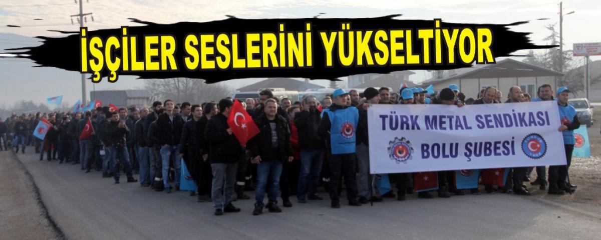 Fabrikanın girişinde toplanan yüzlerce işçi adına basın açıklamasını okuyan Türk Metal Sendikaları Bolu Şube Başkanı Özgür Elçi, yaklaşık 2,5 aydır beklediklerini ifade ederek, “Toplu sözleşme görüşmelerimizin başladığı 5 Ekim’den bu yana sabrediyoruz. Emeğimizin karşılığını almak, insan onuruna yaraşır bir yaşam sürmek için, hak için, adaletli bir ücret için bekliyoruz. Karlarına kar katanlardan, ihracat patlaması yaşayanlardan, rekor üstüne rekor kıranlardan emeğimizin karşılığını istiyoruz” dedi.