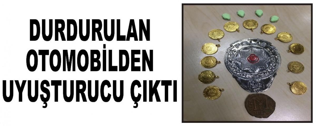 Edinilen bilgiye göre, İl Emniyet Müdürlüğü Kaçakçılık ve Organize Suçlarla Mücadele Şube Müdürlüğü ekipleri, TEM Otoyolu’nda yaptıkları yol kontrolü sırasında İstanbul’dan Ankara’ya seyir halinde olan bir otomobili durdurdu. Otomobil içerisinde ve araçta bulunan A.Ş. (28) ile K.E. (22) isimli şahıslar üzerinde yapılan aramada 4 adet uyuşturucu hap, 12 adet sahte altın, 1 adet sahte olduğu değerlendirilen Bizans dönemine ait para ve sahte polis rozeti yakalandı.