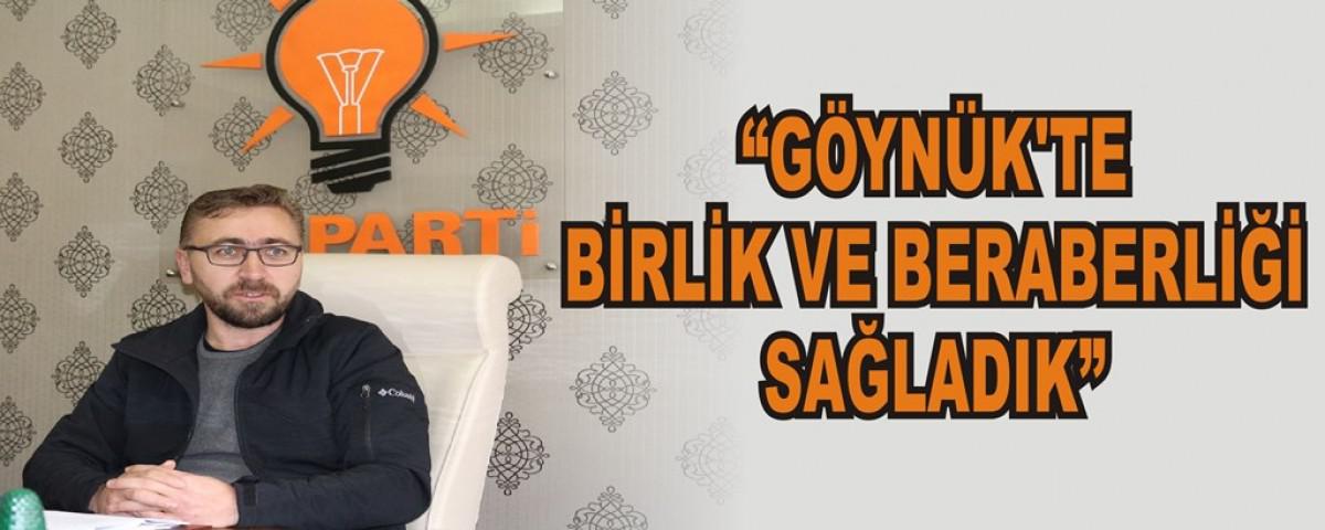 Ak Parti Göynük İlçe Başkanı Mehmet Demiröz Göynük ile ilgili açıklamalarda bulundu. Ak parti Göynük ilçe başkanı Demiröz açıklamasında; “Göynük’te 2014’den ilçe başkanı olduğumdan bu güne ikinci kongremizi gerçekleştirdik ve hizmet vermeye, çalışmaya devam ediyoruz. Bu güne kadar Göynük’ün sıkıntısı olan Taraklı, Ankara bağlantısı olan yol ağımızı milletvekillerimize, il başkanımızın destekleri ile sıcak asfaltla buluşturduk. Yol sorununu bitirdik. Yılardır süren Bolu yolu sorunumuz vardı. Şu an için son 300 metre yolumuz kaldı Bolu yolumuzda… Bolu yolunu tamamlamak üzere bakan yardımcımızdan aldığımız destekle inşallah Taşkesti -Göynük arasını sıcak asfaltla kaplayarak inşallah Göynük’ün yol sorununu çözmüş olacağız. Tabi belediye olarak da en büyük sorunlarımız alt yapı sorunlarımızdı. Şimdi belediye başkanımız sayesinde Göynük’ün alt yapı sorunlarını bitirdik. Artık Göynük’ün çevresini güzelleştirme adına bu önümüzde yıl en büyük sıkıntımız TOKİ, Hastane ilçe yolu olan yolumuzu Mayıs ayında sıcak asfaltla buluşturacağız Belediye başkanımızın girişimleri ile. Artık turizm ilçesi olan ilçemizin çevresini de güzelleştirerek turizme daha büyük değer katma adına çalışmalarımız devam edecek. Bundan sonrada halkımıza hizmet adına çalışmaya da devam edeceğiz. İnşallah süreç daha iyi ilerler. Bundan sonraki süreçte de elimizden geldiğince vatandaşımıza hizmet vermeye devam edeceğiz” dedi