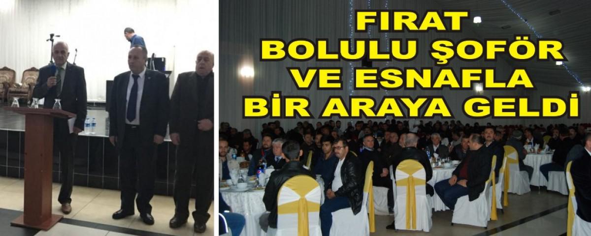 Şoförler ve Otomobilciler Odası Başkan Nihat Alpat Öztürk’ün vefatının ardından boşalan Bolu Şoförler ve Otomobilciler Odası Başkanlığı için aday olan Orhan Fırat düzenlediği akşam yemeği ile Bolulu şoför ve esnaflarla bir araya gelerek projelerinden bahsetti. Düzenlediği akşam yemeğinde açıklamalarda bulunan Fırat; “Seçim ziyaretlerinde izlediğim kadarı ile esnaflarımız arasında dayanışma ve birlik beraberliğin zayıf olduğunu gördüm. Öncelikle kendi aramızda birlik ve beraberliği sağlamak zorundayız. Değerli dostlarım, bizler 1000 kişilik bir aileyiz ve 1000 kişilik bir toplumu 10 kişinin yönetmesi bana biraz zor gibi görünüyor ama yasa gereği 10 kişi olmak zorundadır. Şayet Allah nasip ederse, sizler de tercih ederseniz eğer, komisyonlar kurmak istiyorum. Sadece taksici arkadaşlardan en az 10 kişilik bir komisyon, servisçi arkadaşlarımdan 10 kişilik komisyon ve yine kamyoncu, galerici ve rent a car’cı arkadaşlarımdan 10 kişilik bir komisyon kurmak istiyorum. Bu komisyonlar; sırası ile yönetim kurulu toplantılarına davet edilip, sorunları masaya yatırıp çözüm önerileri ve proje yaparak ilgili kurumlara yazılı olarak bildirmek ve sonuçlarını tekrar üyelerimize en kısa yoldan bildirmek içindir. Eğer sorunlarımızı büyümeden çözmeye çalışırsak daha huzurlu hizmet vereceğimizi düşünüyorum” ifadelerini kullandı.