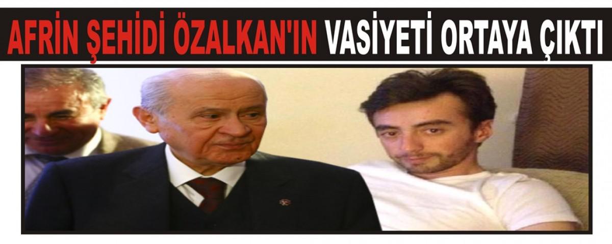 ,Özalkan’ın vasiyeti şu şekilde: “Vasiyetimdir. Şehit olursam Kurt-ar Derneği aracılığı ile Telafer’deki Türkmen Bala’lar için anaokul – kreş veya kültür merkezi devletin bana vereceği paradan yaptırılması ve ismimin konması. Reis vasiyetimdir. Aileme iletirsin telefonumdan gelen mesaj kayıtlı dursun şahit olsun.”