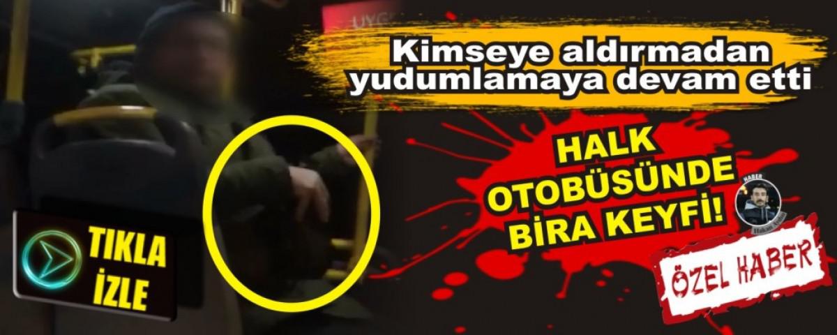 Bolu Özel Halk Otobüsüne binen ve aşırı alkollü olduğu her halinden belli olan bir vatandaş, otobüsten bulunan yolculara aldırmadan elindeki biradan içmeye devam etti. Otobüs şoförü ise tam arkasında bulunan yolcunun alkol aldığını fark etmedi.