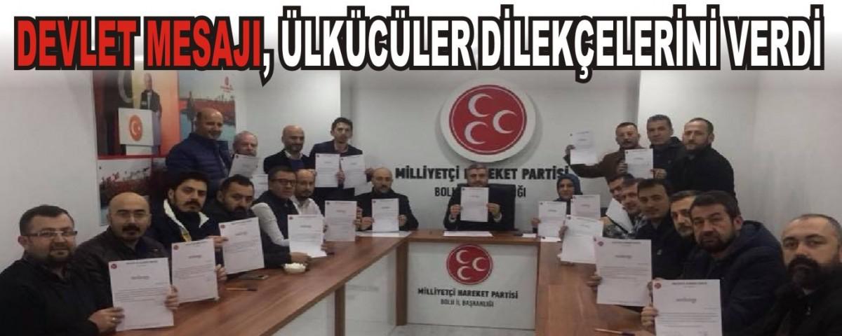 MHP tüm teşkilatları ile Afrin operasyonuna destek olmak amacıyla Askerlik Şubesine dilekçe verdi. Dilekçede; Çanakkale ruhuna vurgu yapıldı. Konuyla ilgili bir açıklama yapan MHP İl Başkanı Adem Evcil; “MHP Bolu İl, Merkez İlçe, Kadın kolları İl Başkanlığımız olarak, ülke içerisinde ve sınır ötesinde düzenlenen ve düzenlenmesi olası her türlü operasyonda, ihtiyaç hasıl olduğunda seve seve görev almak için ilgili makamlara ulaştırılmak üzere başvuru dilekçelerimizi imzaladık. MHP olarak ülkemizi içeriden ve dışarıdan tehdit eden her türlü unsura karşı mücadelemiz son nefer, son nefes, son damla kana kadar sürecektir. Bundan hiç kimsenin şüphesi olmasın. Operasyon bölgelerindeki güvenlik güçlerimiz her daim dualarımızda, her daim gönlümüzdedir. Liderimiz sayın Dr. Devlet Bahçeli beyefendinin tek bir emri ile gerilmiş yaydan fırlayan ok misali ihanetin, terörün ve ülkemiz için tehdit oluşturan her türlü unsurun bağrına Yüce Türk Milleti adına saplanmaya hazır ve nazırız. Ekmeğini yediğimiz, toprağında büyüdüğümüz, ezanıyla şereflendiğimiz, bayrağı altında gölgelendiğimiz, vatanımız için ihtiyaç hasıl olduğunda canımızı feda etmek bizim için şereflerin en yücesidir. Allah Türkü Korusun ve Yüceltsin” dedi.