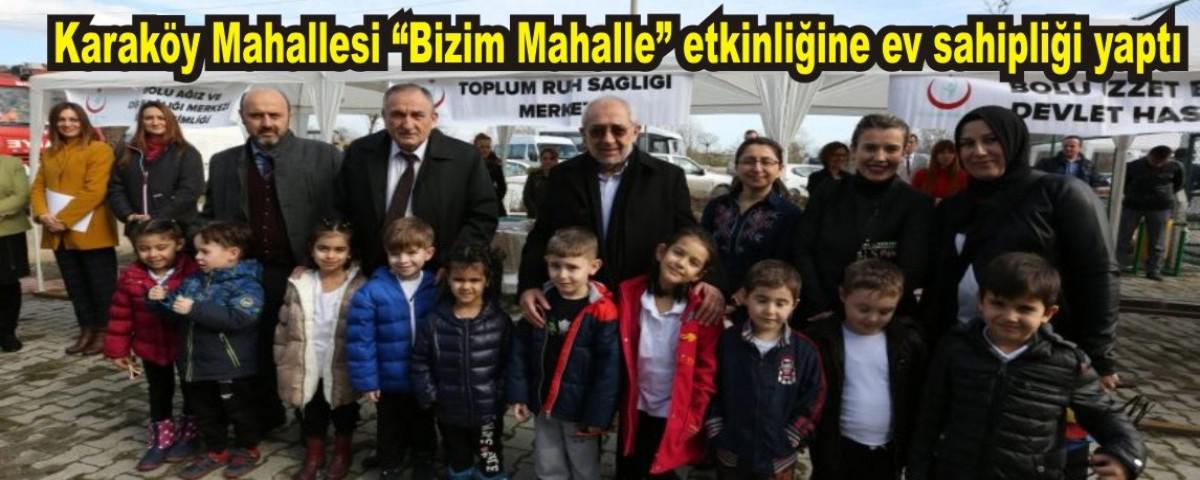 Bolu Belediyesi Muhtarlık İşleri Müdürlüğü’nce eski mahalle medeniyetinin geliştirilmesi ve mahalle kültürünün canlanması amacıyla başlatılan ‘Bizim Mahalle’ Projesi’nin 15’ncisi Karaköy Mahallesinde gerçekleşti. Karaköy Mahallesi sosyal tesisinde, Cuma namazı sonrası düzenlenen 15. Bizim Mahalle etkinliğine AK Parti İstanbul Milletvekili Ekrem Erdem, Bolu Belediye Başkanı Alaaddin Yılmaz, Belediye Başkan Yardımcıları Emine Davarcıoğlu, Zerrin Biçen, AK Parti İl Başkan Vekili Mazhar Bozoğlu, AK Parti Merkez İlçe Başkanı Ahmet Eker, muhtarlar, kurum müdürleri, daire müdürleri ve vatandaşlar katıldı.