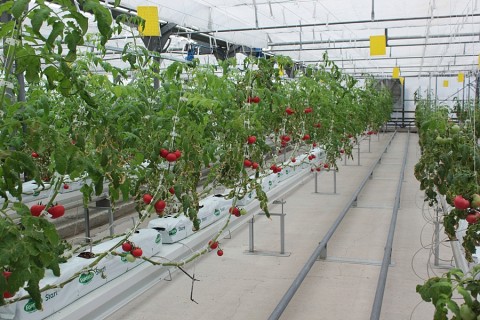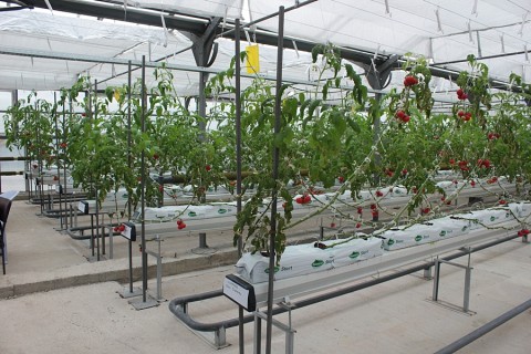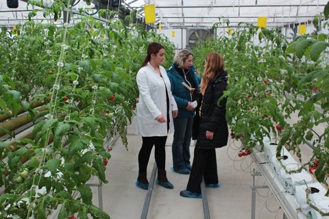 Z.Y.Müh. İlknur Özkök Kaşıkçı: Bu serada domates fidelerini, Hindistan cevizi torfuna (Cocopead) dikiyor ve topraksız tarım yapıyoruz. Toprak kullanmıyoruz. Yastıklarda, damlama su ile otomatik otomasyon sistemiyle sulama yapılıyor. Suyunun içine gübresini, vitaminlerini biz vererek besliyoruz. Verime yönelik çalışma yaptığımız için ihtiyacı neyse, topraktan alacağını neyse onu dışarıdan, yani insan eliyle kontrollü veriyoruz. Bunun avantajları şu, topraktan gelebilecek hastalıkları, zararları önlemiş oluyoruz.