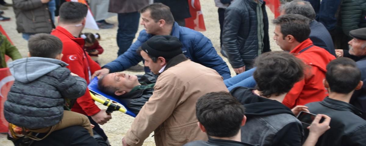Sağlık İl Müdürlüğü tarafından miting alanında 112 Acil Müdahale ekipleri hem salon içerisinde hem de salon dışarısında hazır edildi. Müdürlüğün yaptığı planlama kapsamında görevlendirilen ambulanslar çeşitli noktalara yerleştirildi. Miting alanında rahatsızlanan vatandaşlara ilk müdahale alanda bulunan 112 Acil Servis ekipleri tarafından yapıldı.