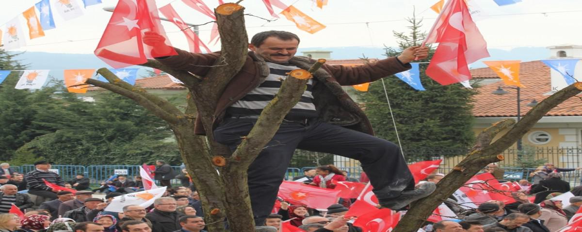 Miting alanında bulunan vatandaşlar, Ak Parti Genel Başkanı ve Cumhurbaşkanı Recep Tayyip Erdoğan2ı görebilmek için adeta bir birileriyle yarıştılar. Erdoğan’ı görmek isteyen vatandaşlar bu amaçlarına ulaşmak için zaman zaman miting alanı içerisinde bulunan ağaçlara çıktılar. Ancak ağaçlara çıkan vatandaşlar, güvenlik önlemleri kapsamında emniyet güçleri tarafından aşağıya indirildi.