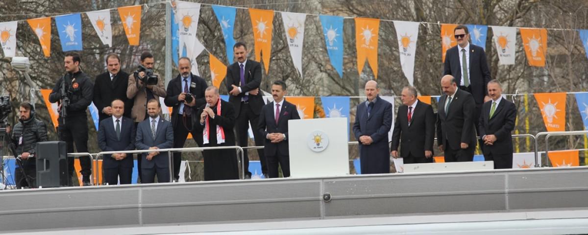 11.00’de yapılacağı belirtilen miting alanına saatler öncesinden gelen vatandaşlardan bazıları, Cumhurbaşkanı Recep Tayyip Erdoğan gecikince yerlere oturdu. Miting alanı çevresinde bulunan merdivenlere oturan vatandaşlar, Erdoğan’ın miting alanına gelmesiyle ayağa kalktı.