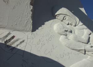 Bolu'da, 12 Kasım 1999'daki depremde enkaz altında kalarak hayatını kaybeden 48 kişinin anısına yapılan Deprem Anıtı ve Müzesi, depremin 9'uncu yıldönümünde aşıkların yazı tahtası haline geldi.