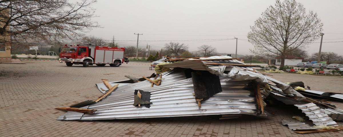 İlimizde şiddetli rüzgar nedeniyle bir lisenin çatısı okul bahçesine düştü. Öğrencilerin ders saatinde olması nedeniyle büyük bir facianın eşiğinden dönüldü.