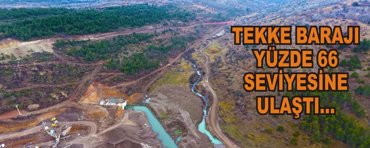 Ön yüzü beton kaya dolgu tipinde inşa edilen Tekke Barajı’nın temelden yüksekliği 76,5 metre olacak. Tekke Barajı inşaatında 12.740 metre uzunluğunda Kartalkaya rölekasyon yolu tamamlanarak işletmeye alındı. Kazı ve derivasyon tüneli imalatlarının tamamlandığı barajın gövde dolgu çalışmaları ise devam ediyor.