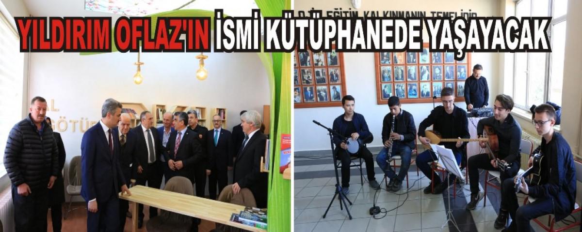 Konuşmaların ardından şehidimiz Yıldırım Oflaz’ın özgeçmişi okundu ve kütüphanenin açılışı Bolu Valisi Aydın Baruş, Belediye Başkanı Alaaddin Yılmaz ile şehidimizin anne ve babası tarafından yapıldı ve kütüphane gezildi.