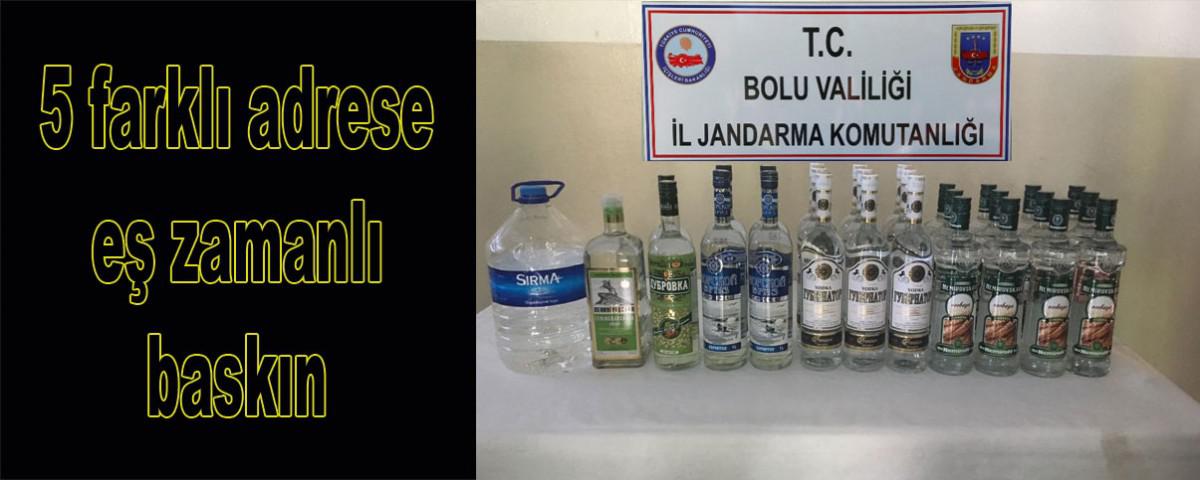 Bolu İl Jandarma Komutanlığı tarafından Bolu ili Gerede ilçesinde Gerede Cumhuriyet Başsavcılığından alınan arama kararı ile 5 farklı adreste eş zamanlı olarak yapılan denetim ve arama yapıldı. Aramada 33.5 lt. sahte kaçak içki ele geçirildi. Olayla ilgili olarak 2 şüpheli şahıs hakkında “5607 sayılı Kaçakçılık Kanununa Muhalefet” suçundan işlem başlatıldı.