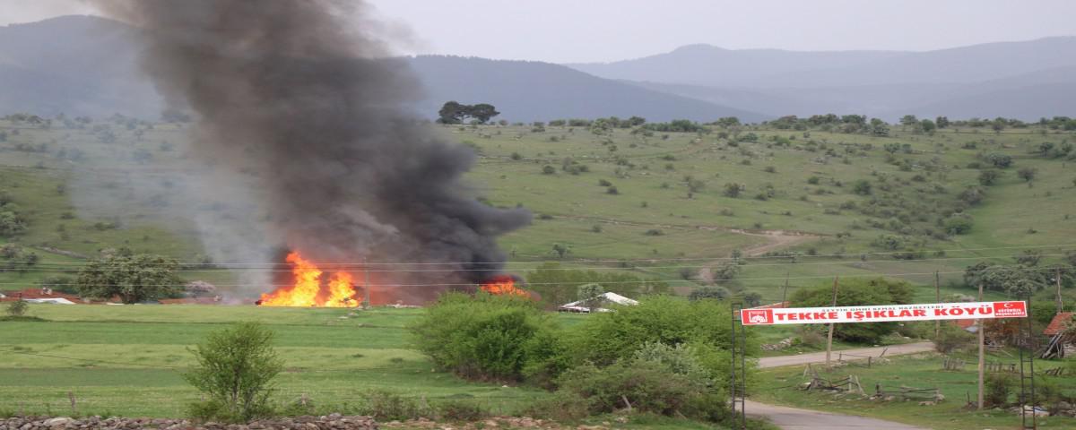 Tekke Işıklar köyünde çıkan yangına müdahale etmeye giden itfaiye aracı köy yolunda şarampole yuvarlandı.İki itfaiye eri şehit oldu.