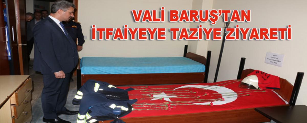 Vali Aydın Baruş, ardından İtfaiye Müdürlüğü binasına geçti. Burada idari binayı ve dinlenme odalarını dolaşan Vali Baruş, görevleri başındayken hayatlarını kaybeden vazife şehitleri Erhan Yazkan (32) ve Aykut Kabakcıoğlu’nun (22) Türk bayrağına sarılı yatakları başında dua etti. Baruş, ardından İtfaiye Müdürlüğü’nden ayrıldı.