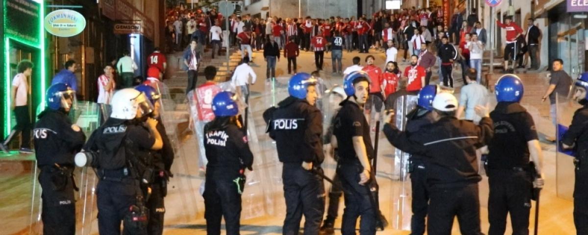 Stadyumdan çıkarılan Boluspor taraftarları bu kez de stat dışında taşkınlık yapmak isteyince çevik kuvvet polisleri tarafından stadyum çevresinden uzaklaştırıldı. Boluspor taraftarlarının sayısının fazla olması nedeniyle olay yerine TOMA da geldi. Bazı taraftarlar ile polis arasında kısa süre arbede yaşanırken, taraftarların dağıtılmasıyla olaylar son buldu. İHA