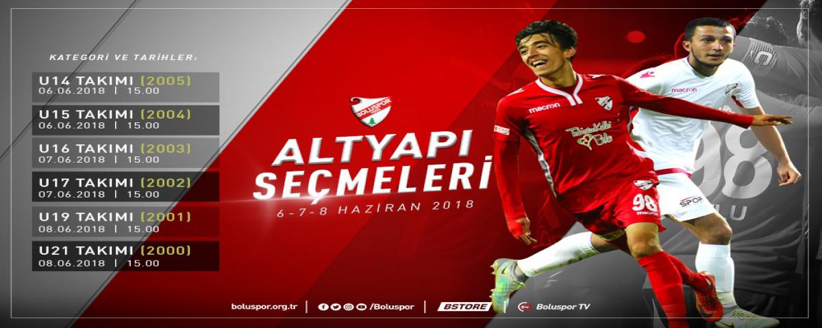 Seçmeler, Boluspor Gençlik Geliştirme Merkezi Karaçayır Tesislerinde yapılacaktır. Katılacak olan sporcuların en geç saat 14.00'de hazır bulunmaları gerekmektedir.