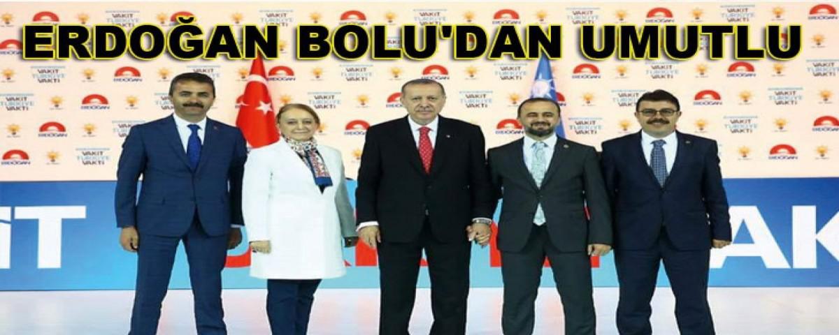 Toplantıya Bolu’dan katılan AK Parti Bolu Milletvekili Adayları Arzu Aydın, Fehmi Küpçü ve Metin Vural, Cumhurbaşkanı Erdoğan’la bir araya geldiler. AK Parti Genel Merkezi tarafından seçim beyannamesi ve milletvekili aday tanıtım toplantısına Bolu’dan, Belediye Başkanı Alaaddin Yılmaz, İl Genel Meclisi Başkanı Yaşar Yüceer, AK Parti Bolu İl Başkanı Nurettin Doğanay, AK Parti Bolu Milletvekili Adayları, Arzu Aydın, Fehmi Küpçü ve Metin Vural ile parti teşkilatlarından önemli isimler katıldı. Elif Erdoğan