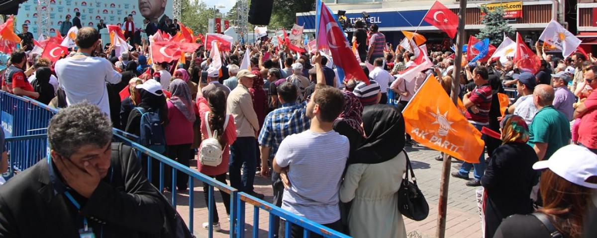 Bolu Akp nin mitinginde katılım olmadı! Bu ilgisizliğe; saat 1 de çağrı yapılıp 2de başlaması,Boluya verilen sözlerin yerine gelmemesi,Akp seçmeninin ilk defa seçme şansı olduğunda Tayyipden vazgeçmeyip vekillerde onay vermemesi,Mitingin anafikri olan temel atma işi esnafın bilgiler netleşmediğinden ilgi duymaması.Besob ve Elektrikçiler odası bu miting için mesaj yoluyla esnafları valilik önüne davet etmeleri yasal değildir.Hiçbir oda, Siyasi bir partiye olumlu veya olumsuz etki edecek uygulamalarda bulunamaz.Başka bir oda iki pankartla alanda protesto etmesini bilmiyormuydu.Zorla güzellik olm