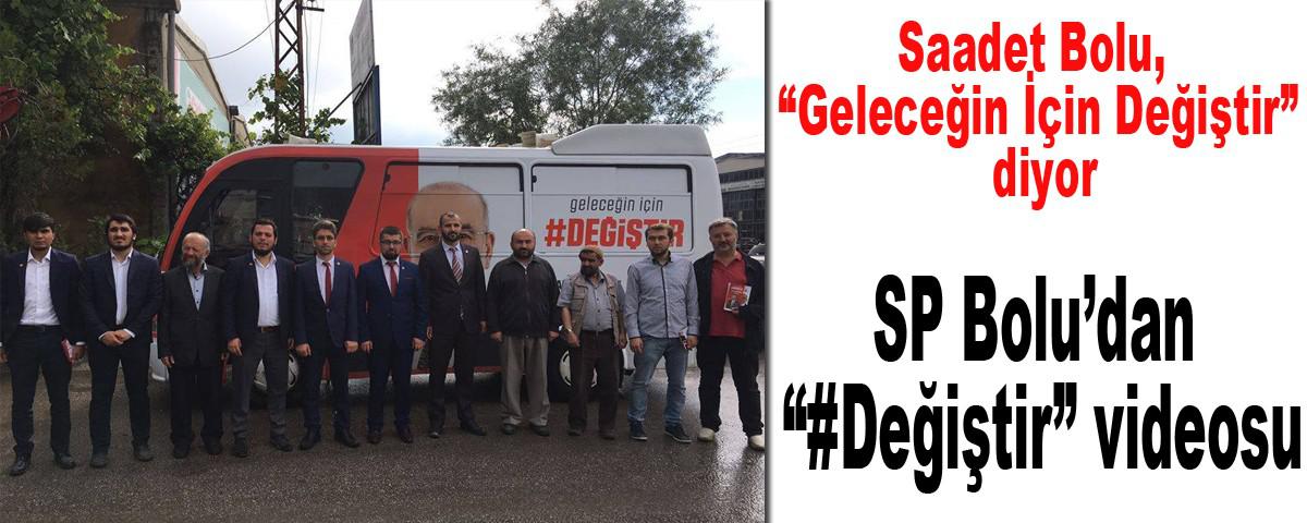 24 Haziran seçimleri için kurulan Millet İttifakında yer alan Saadet Partisi(SP), sloganını “Değiştir” olarak belirledi. Saadet Partisi Bolu İl Başkanlığı da “Değiştir” sloganıyla birlikte 24 Haziran’da yapılacak Cumhurbaşkanlığı ve 27. Dönem Milletvekilliği seçimleri için kolları sıvadı. Seçim çalışmaları kapsamında sahada vatandaşları ziyaret eden Saadet Partisi Bolu Milletvekilleri, sahada yaptıkları çalışmaların yanı sıra sosyal medyada yaptıkları çalışmalarla da dikkatleri çekiyor. Saadet Partisi tarafından hazırlanan “Geleceğin için #DEĞİŞTİR” adıyla yayınlanan videoda Saadet Partisi Bolu 1. Sıra Milletvekili Adayı İsa Sayın ve Saadet Partili gençler kamera karşısında ‘Kendin İçin Değiştir’ diyor. Videoda #Değiştir broşürlerini alan gençler Milletvekili Adayı İsa Sayın’ı arayıp kampanyanın ne olduğunu soruyor. İsa Sayın’da gençlerin sorusunu ve Saadet Partisi’nin neleri değiştireceğini anlatıyor. Kısa sürece binlerce kişinin izlediği video defalarca da paylaşılarak yayılmaya devam ediyor.