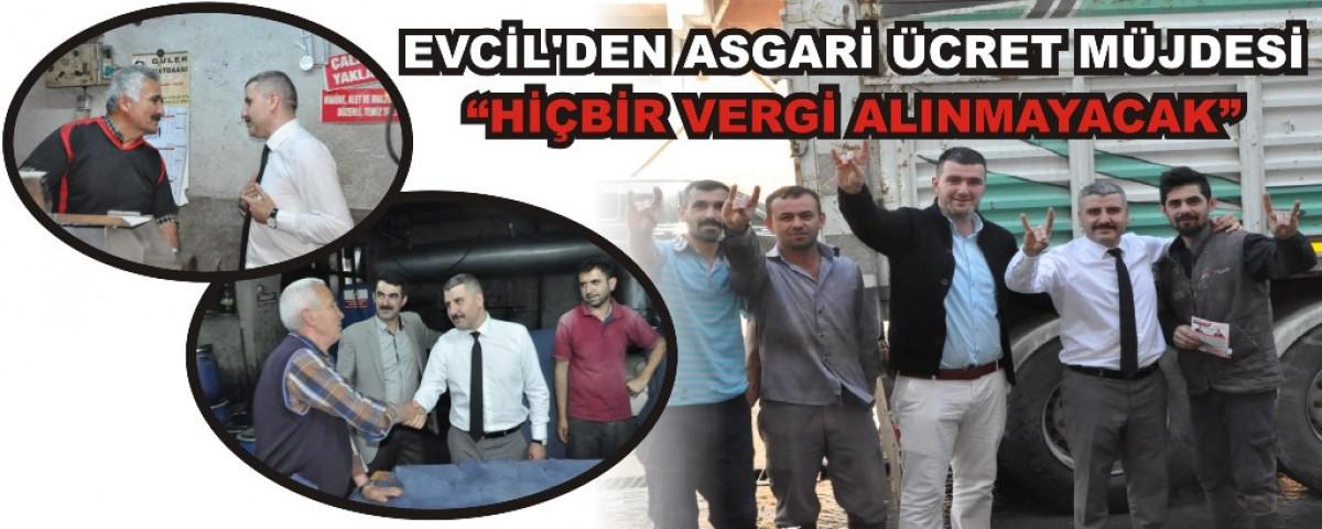 Gerede’de deri sanayisi esnafını ziyaret eden Milliyetçi Hareket Partisi 1. Sıra Bolu Milletvekili Adayı Adem Evcil, asgari ücretin durumu hakkında soru soran işçilere mecliste partisinin iktidar olması durumunda maaşlarından vergi alınmayacağını söyledi.