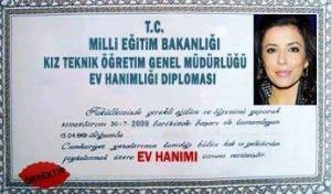Milli Eğitim Bakanlığı, `ev hanımlığı`nı artık diplomalı hale getiriyor. Ev işleri işlerini yapacak elemanların yetiştirilmesi amacıyla Kız Teknik Öğretim Genel Müdürlüğü bünyesinde `Ev ve Aile Hizmetleri` bölümü açıldı. Buradan yetişen `ev hanımları` hem ev işlerini daha nitelikli ve bilimsel yapacak, hem ellerindeki belgelerle kolaylıkla iş bulabilecek, hem de istemeleri halinde üniversiteye gidebilecekler.