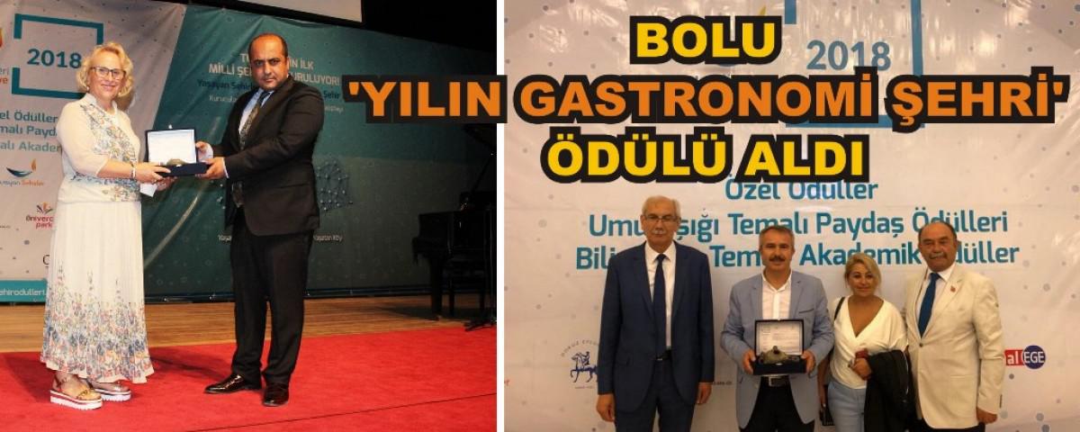 Bolu Belediyesi, Dokuz Eylül Üniversitesi ve Yaşayan Şehirler Platformunun “Şehir Ödülleri Türkiye 2018” proje yarışmasında, 300 proje başvurusu arasından ödül almaya hak kazandı. Dokuz Eylül Üniversitesi Sabancı Kültür Merkezinde gerçekleştirilen ödül töreninde “Yılın Gastronomi Şehri” ödülünü Bolu Belediye Başkan Yardımcısı Emine Davarcıoğlu aldı.