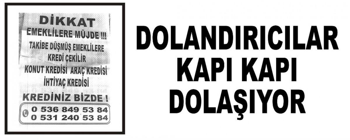 İl Emniyet Müdürlüğü tarafından yapılan duyuruda; “İlimizin bazı yerlerinde kimliği belirsiz kişi veya kişilerce dağıtılan ve üzerinde “DİKKAT, EMEKLİLERE MÜJDE!!! TAKİBE DÜŞMÜŞ EMEKLİLERE KREDİ ÇEKİLİR KONUT KREDİSİ ARAÇ KREDİSİ, KREDİNİZ BİZDE! 0536 8495384 – 0531 2405384” şeklinde yanıltıcı bilgiler bulunan broşürlerin, dolandırıcılık mağduru olmaması için halkımız tarafından dikkate alınmamalıdır.