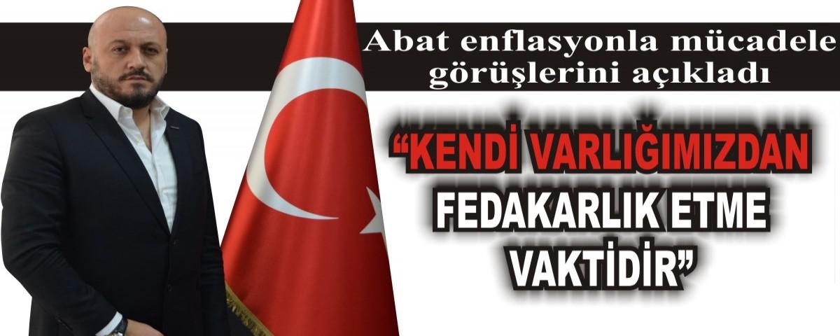 Enflasyonla mücadeleye kapsamında Bolu iş dünyasına fedakarlık çağrısında bulunan Abat şu ifadelere yer verdi: “Bizler uzun ve zorlu bir yolun yolcusuyuz. Zira hedefimiz büyüktür ve meselemiz Büyük Türkiye’dir. Çünkü üzerinde var olduğumuz topraklar, yıllarca üzerine türlü oyunlar oynanmış ama asla vazgeçiremedikleri Anadolu toprakları,yani Türkiye’mizdir, memleketimizdir.